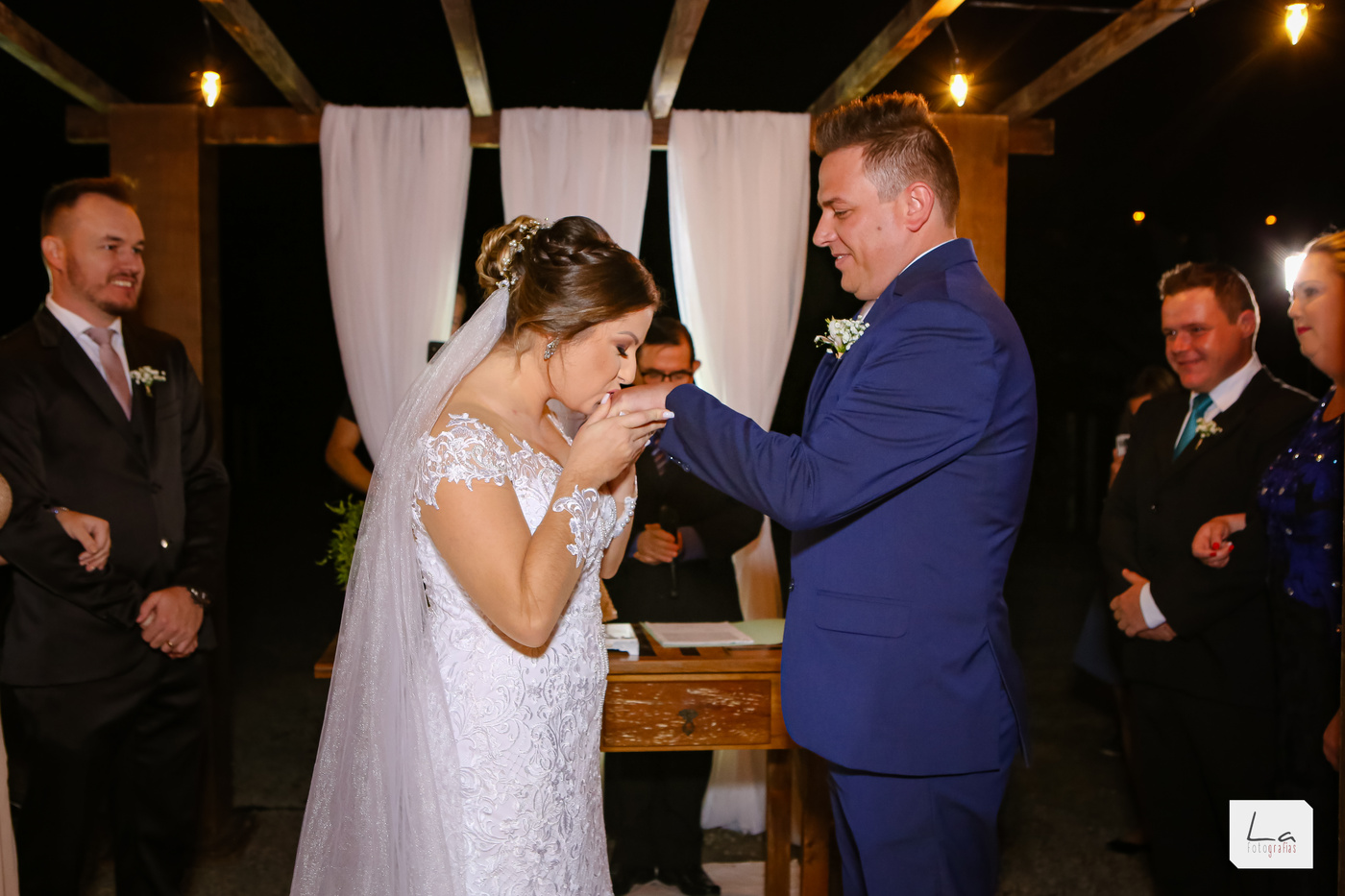 No Pre Wedding já tínhamos o dilema do tempo, no casamento não foi diferente, semana de chuva, casamento externo, srsr e o santo de noiva, firme e forte mais uma vez rsrsrs foi um casamento tão lindo! Anoiteceu rapidinho, mas ficou tudo tão perfeito e romântico como eles queriam!
